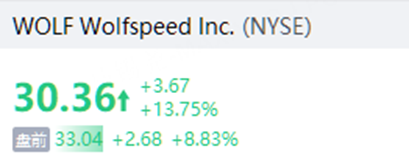 Wolfspeed涨超8%,peketec传言称美国政府可能会持有其股权;