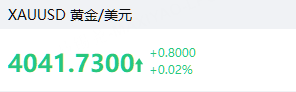 现货黄金微涨0.02%,报4,041.73美元/盎司。