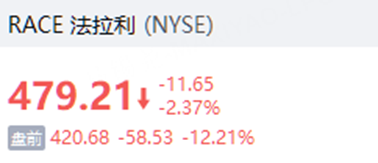法拉利跌超12%!公司上调了今年的利润和收入预测并发布了2030年的长远业绩指引。