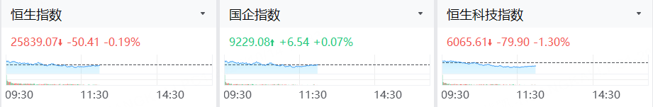 10月14日,港股三大指数涨跌不一,截止午间收盘,恒生指数跌0.19%,恒生科技指数跌1.30%,国企指数涨0.07%。