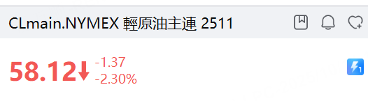 WTI原油日内跌幅达2.30%,报58.12美元/桶;美股原油股及ETF盘前普跌,埃克森美孚盘前跌0.9%,雪佛龙、康菲石油、西方石油跌1%, 美国原油ETF 盘前跌2%。