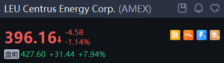 核能公司 Centrus Energy Corp. 涨近8%,Oklo Inc. 、NuScale Power 涨超6%,主要受到美国人工智能(AI)行业对电力需求激增的推动。
