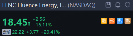 Fluence Energy, Inc. 大涨20%,昨日涨16%。投资者纷纷抢购与摩根大通未来10年1.5万亿美元投资计划相关领域的股票。