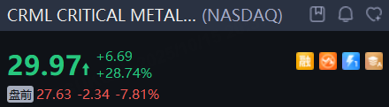 连续暴涨的关键矿产概念股盘前普遍回调。截至发稿, CRITICAL METALS CORPORATION 跌近8%, United States Antimony Corp跌超5%, USA Rare Earth Inc. 跌超3%, MP Materials Corp. 跌超1%。
