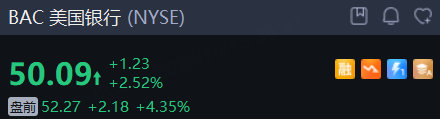 美国银行涨超4%,第三季度业绩超预期,投资银行业务表现强劲。