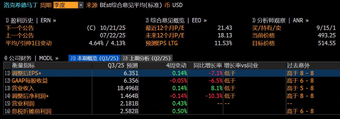 尽管投资者通常依赖一致的收益和收入预期来评估公司整体业务表现,但分析各关键业务板块的预期能提供更全面的视角。以下是华尔街分析师对洛克希德马丁主要业务板块的预期: