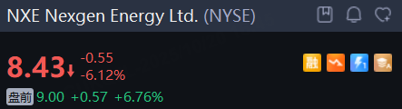核电股盘前集体走强, Nexgen Energy Ltd. 涨近7%, NuScale Power 涨5%,NANO Nuclear Energy涨超4%,Centrus Energy、Oklo涨超3%。