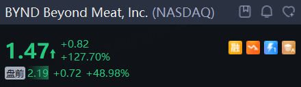 “人造肉第一股”Beyond Meat, Inc. 暴涨近50%,昨日飙升超127%。Beyond Meat近期宣布的债务交换协议成功避免了公司面临的短期违约风险。其次,Beyond Meat目前是美股市场上被做空最多的股票之一,空头占其总自由流通量高达64%。这种高空头比例为当前的"空头挤压"现象创造了条件,导致股价出现快速上涨。