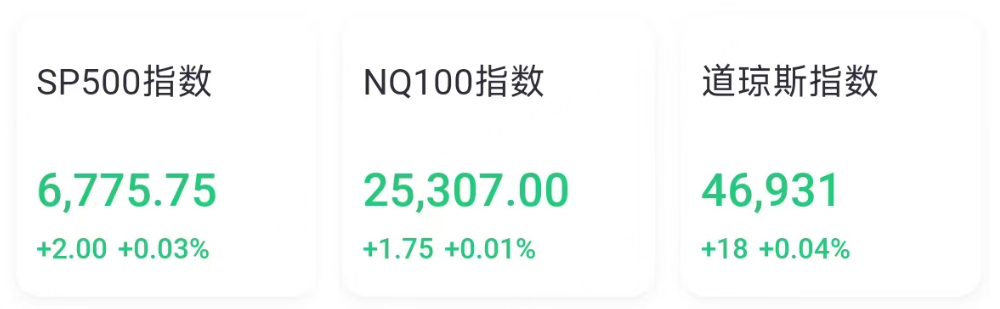 大型科技股涨跌不一。特斯拉跌0.21%,苹果跌0.09%,谷歌跌0.2%;英伟达涨0.35%,微软涨0.07%。