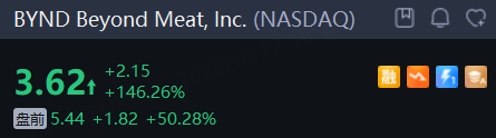 Beyond Meat, Inc.盘前续涨超50%,此前三个交易日飙升600%!本周一,Roundhill投资公司宣布将Beyond Meat纳入其主题型ETF之Roundhill 迷因股ETF(MEME);周二,Beyond Meat又宣布与沃尔玛达成协议,将在全美更多门店扩大分销范围,进一步刺激了行情。