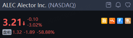 生物技术公司 Alector Inc. 暴跌超58%,葛兰素史克声明其与Alector合作的试验性药物latozinemab未能延缓阿尔茨海默症的进展。