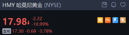 贵金属概念股盘前延续弱势, 泛美白银 跌0.31%, 科尔黛伦矿业 跌0.5%, 金田 跌0.85%, 金罗斯黄金 跌近1%, 哈莫尼黄金 跌近4%。