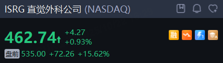 直觉外科公司 盘前大涨近16%,三季度利润和收入均超出市场预期,主要受益于其用于微创手术的手术机器人需求持续增长。