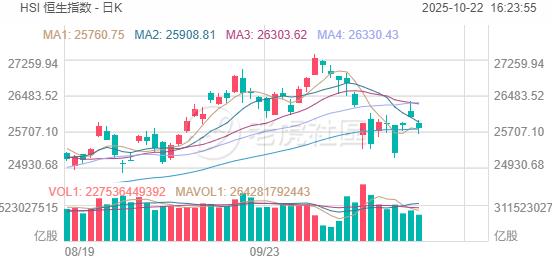 10月22日,港股三大指数集体收跌未能延续反弹行情,恒生科技指数一度跌至2.3%,最终收跌1.41%失守6000点关口,恒生指数跌0.94%同样跌破26000点大关,国企指数跌0.85%报9223点。