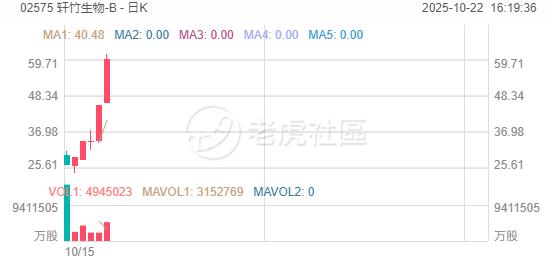 轩竹生物-B飙涨近32%创新高,上市六日股价较发行价已累涨超4倍,总市值超300亿港元;