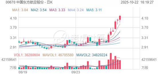 中国东方航空股份涨超4%,近六个交易日累涨逾32%!东航日韩泰时刻量优势明显;