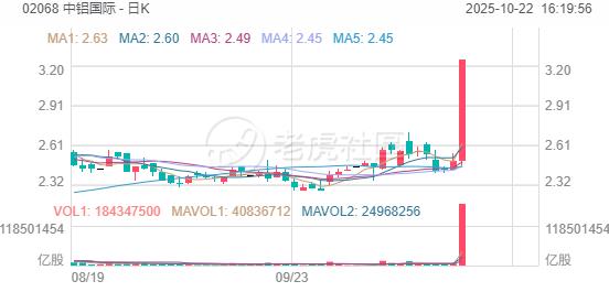 中铝国际午后暴涨逾30%,据报力拓考虑与中铝集团进行资产换股权交易;