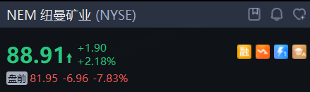 现货黄金盘中失守4050美元/盎司,黄金股盘前走低,纽曼矿业跌近8%,科尔黛伦矿业跌超5%,金罗斯黄金跌超3%,金田跌2.57%。