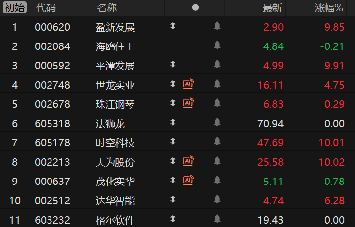10月27日电,市场焦点股盈新发展(5板)竞价涨停,低价股海鸥住工(12天6板)低开0.21%、平潭发展(6天4板)竞价涨停,氯化亚砜概念股世龙实业(4板)高开4.75%,广东国资+教育的珠江钢琴(6天4板)高开0.29%,跨界AI的法狮龙(7天4板)平开,存储芯片板块时空科技(3板)竞价涨停、大为股份(4天2板)竞价涨停,石油化工板块茂化实华(5天3板)低开0.78%,量子科技概念股达华智能(2板)高开6.28%、格尔软件(2板)平开。