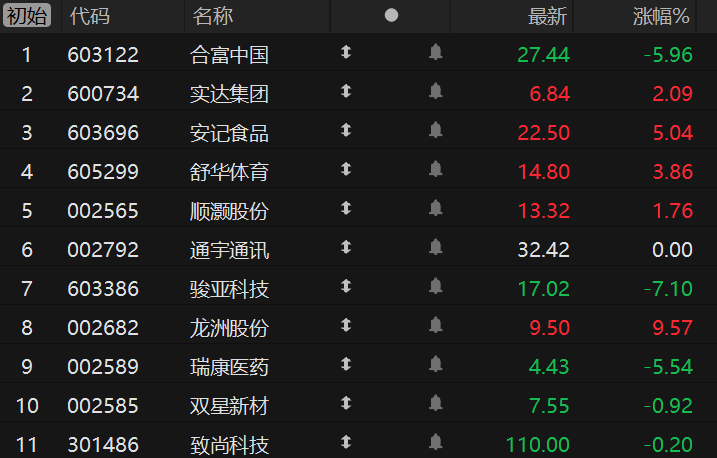 12月9日电,市场焦点股合富中国(30天16板)低开5.96%,福建本地股实达集团(13天8板)高开2.09%、安记食品(5板)高开5.04%、舒华体育(3板)高开3.86%,商业航天概念股顺灏股份(7天6板)高开1.76%、通宇通讯(8天5板)平开,机器人概念股骏亚科技(4板)低开7.10%、龙洲股份(4板)高开9.57%,医药商业板块瑞康医药(4板)低开5.54%,BOPET概念股双星新材(3板)低开0.92%,铜缆高速连接概念股致尚科技(创业板2板)低开0.20%。