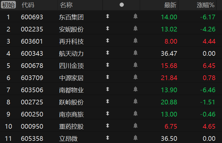 12月12日电,市场焦点股东百集团(5板)低开6.17%,实控人变更的安妮股份(6天5板)低开4.26%,商业航天概念股再升科技(4板)高开4.44%、航天动力(5天3板)平开、四川金顶(6天3板)高开6.45%,房地产产业链的中源家居(6天4板)高开0.78%、南都物业(2板)低开6.46%,光通信板块跃岭股份(3板)低开1.51%,零售板块南京商旅(4天3板)低开0.46%,创新药概念股重药控股(2板)高开4.65%,芯片产业链的立昂微(2板)平开。