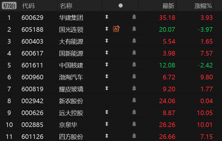 10月16日电,市场焦点股华建集团(9天5板)高开3.93%,零售股国光连锁(3板)低开3.97%,低价股大有能源(4天3板)高开1.65%、国新能源(2板)高开7.57%,可控核聚变概念股中国核建(5天3板)低开2.42%,京东汽车概念股渤海汽车(6天3板)高开9.80%,光伏板块耀皮玻璃(2板)高开1.77%,农药股新农股份(2板)高开0.04%、远大控股(2板)高开10.05%,IDC电源概念股京泉华(4天2板)竞价涨停、四方股份(4天2板)高开7.15%。