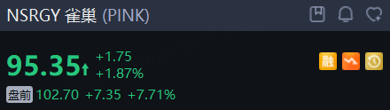 雀巢 大涨近8%。雀巢三季度销售额超预期增长,计划未来两年全球裁员16000人。