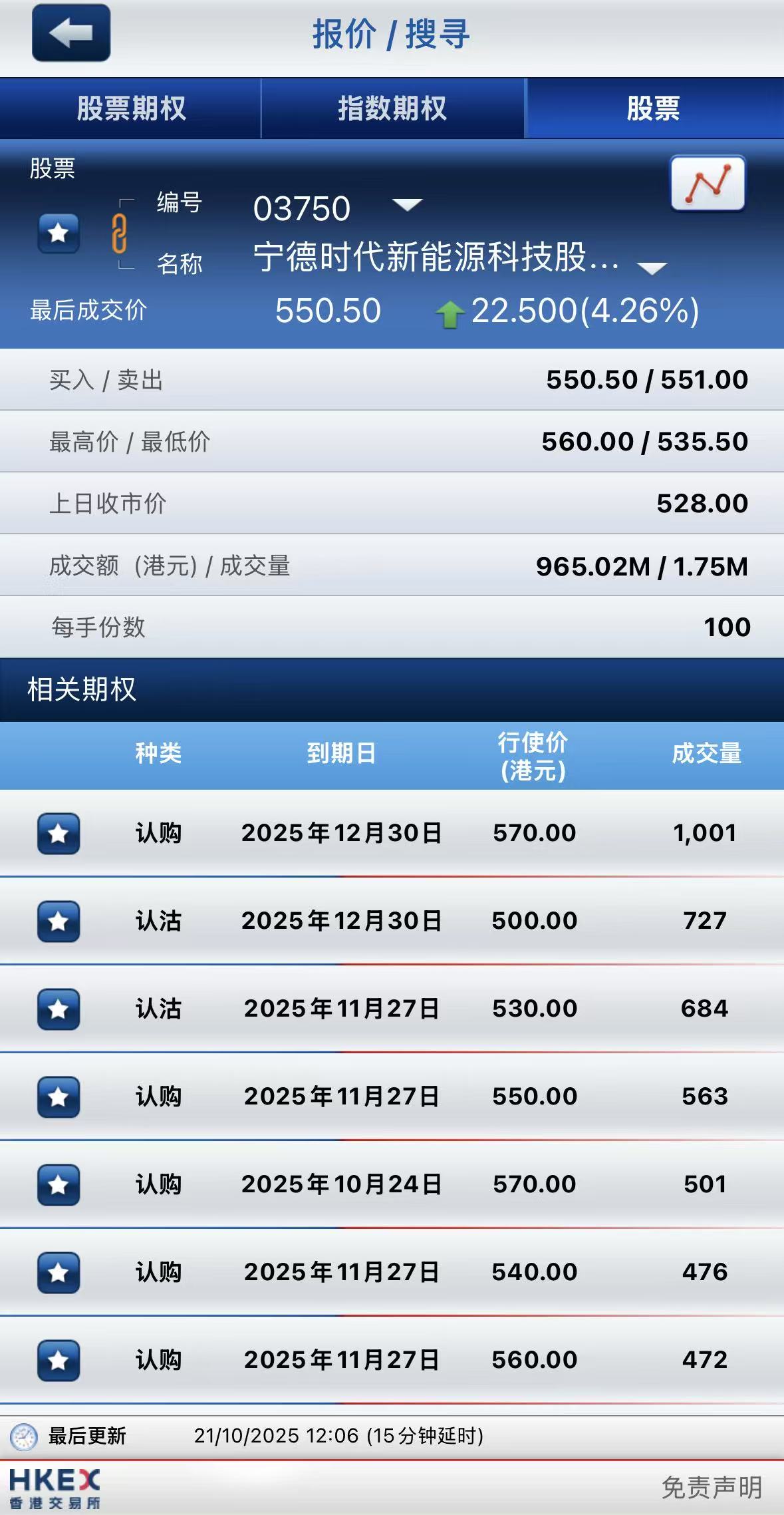 期权方面:宁德时代半日成交逾1.24万张,其中于12月30日到期570港元行使价的认购期权成交居前,成交超1000张。