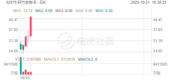 次新股轩竹生物-B飙涨近34%,股价创上市以来新高;